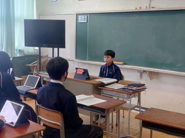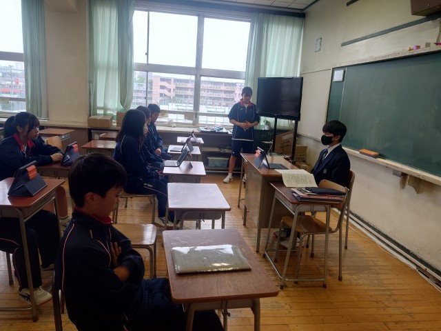 生徒会本部役員、学級委員長、専門委員会の委員長からの挨拶がありました。