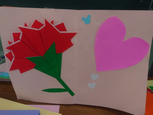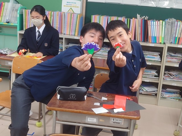 みんなとても笑顔で、楽しそうに作っていました。3回目の3年生は、後輩に教えたり、大きさを変えたりして、オリジナルカーネーションを作ってもいました。