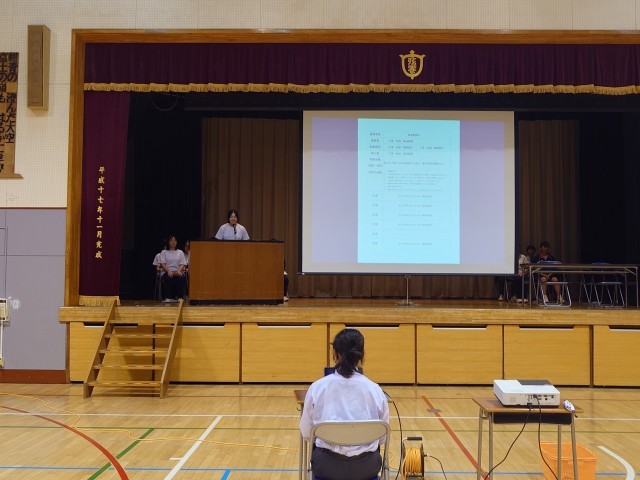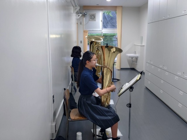 弦巻中学校は、体育大会に向け他練習が今日も続いています。放課後は、生徒総会に向けてリハーサル。部活動も3年生にとって最後の大会に向けて、練習を頑張っています。吹奏楽部は、1年生も楽器が決まり、練習中でした。