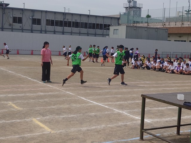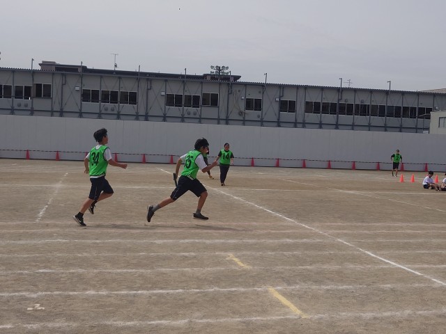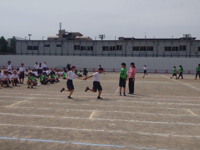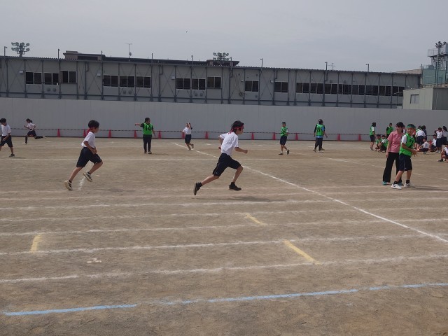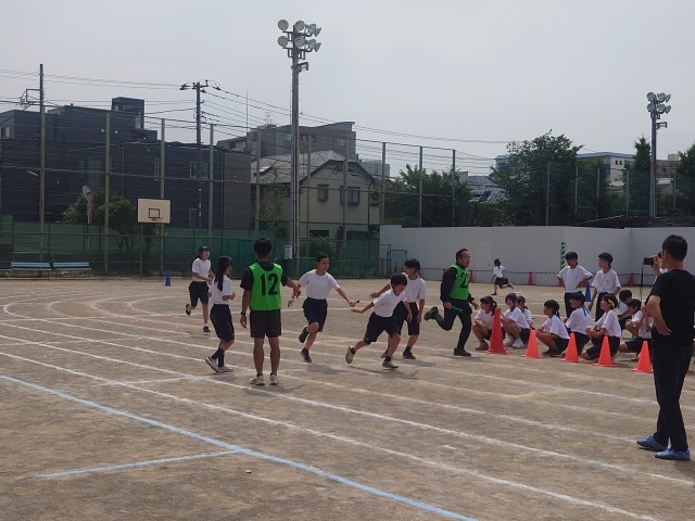 全員リレーの練習も最後です。当日走ってくれる23年生の代わりに先生が走りました。