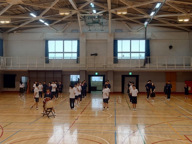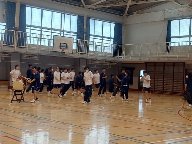 応援団放課後練習。体育大会が延期になったので、もうひと頑張りです。