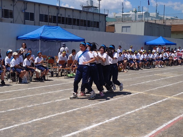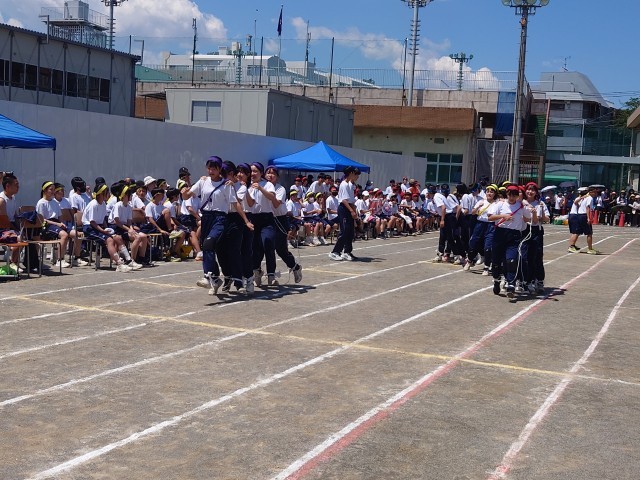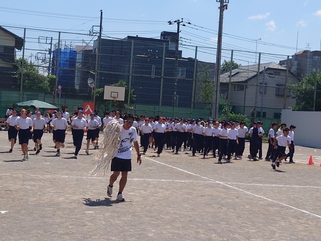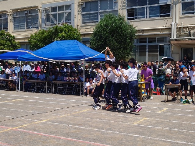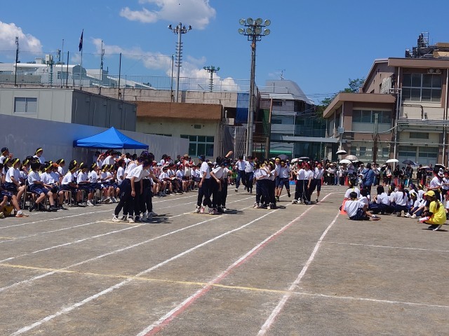 3年生の選手入場。どんなレースを展開してくれるのでしょうか。2年生の体育大会のムカデの経験を生かして、声も足もぴったり揃っている3年生。