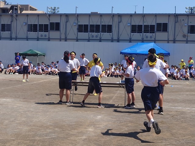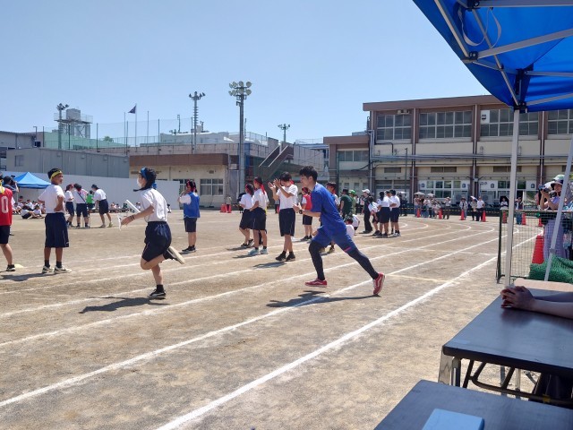 リレー方式で、役員からもらったカードには、借り人が書かれています。その人を探して、ゴールを目指します。