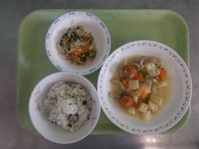 6月5日、6日の給食紹介 公開日 2025/06/09 更新日 2025/06/09 給食 6月5日の献立・牛乳・鮭チャーハン・うずら入りピリ辛みそスープ・冷凍みかん6月6日の献立・牛乳・わかめごはん・塩肉じゃがうま煮・野菜のごまあえ いいね(0)