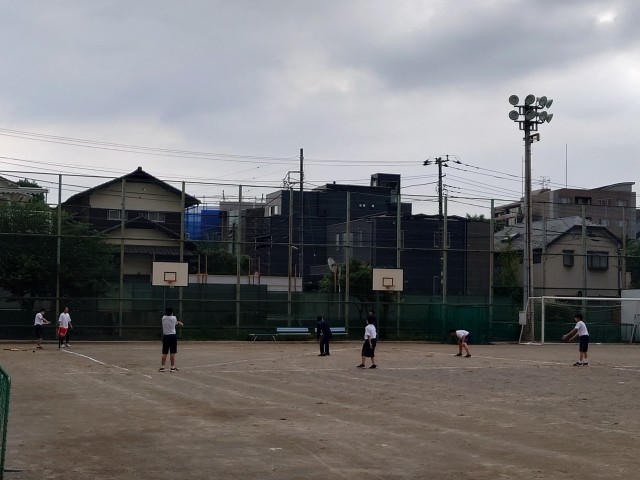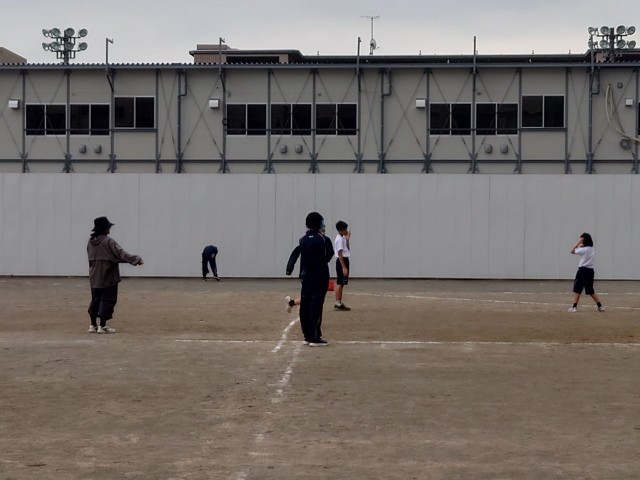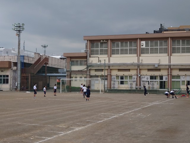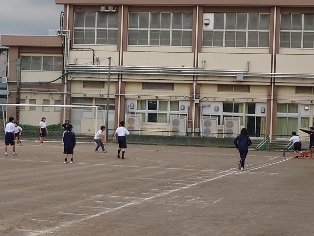 I組は来週行われる連合球技大会にむけて、練習を頑張っています。チームも増えて、みんな元気よくティーボールに取り組んでいます。