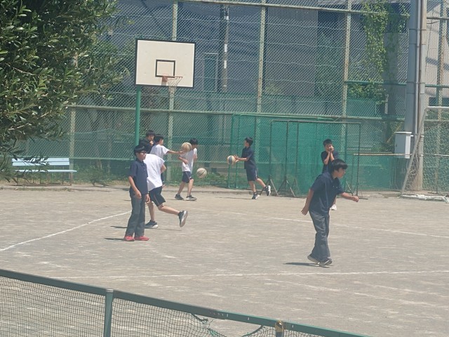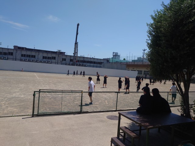 休み時間は、暑い中でも、校庭で遊んでいる生徒もいます。水分補給はしっかりとしてください。