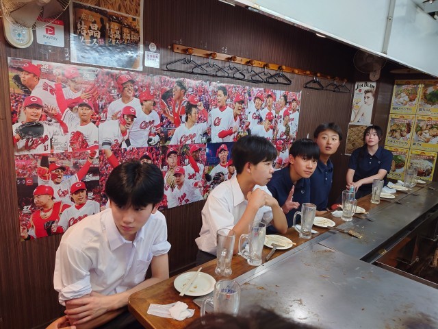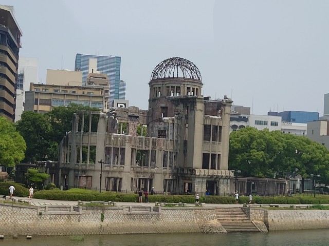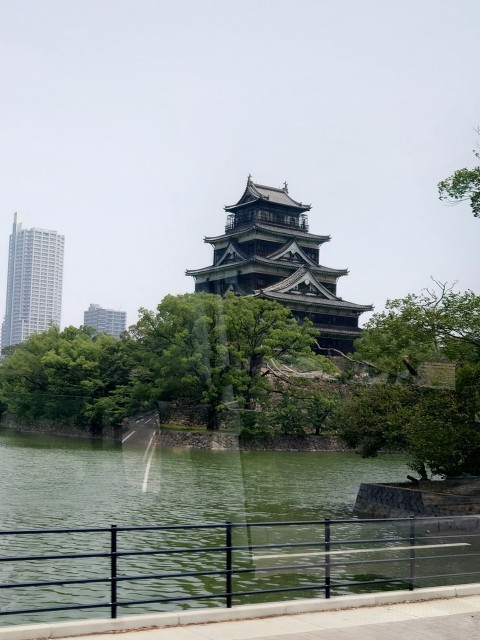 昼食の後、平和公園へ。バスの中から、広島城や原爆ドームを見ました。