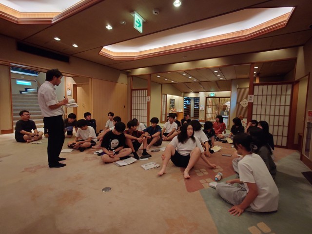 一日目が終了しました。宿でゆっくりと過ごしたので、特に健康面では、みんな回復して元気に過ごしていました。明日は、新幹線で新大阪へ。