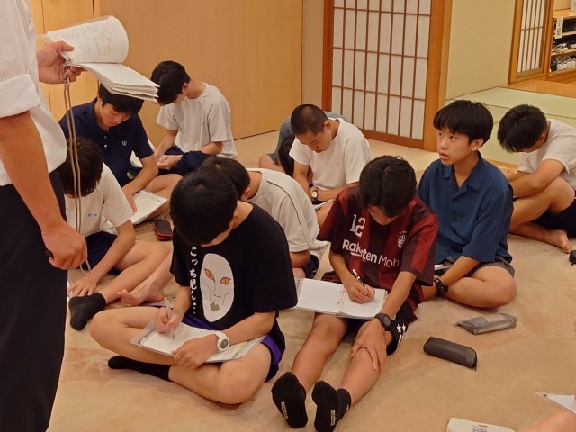 班長会議が始まりました。今日の反省と清水先生からの連絡です。