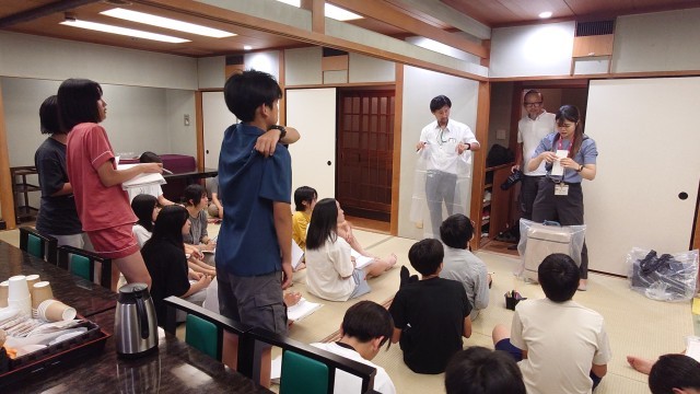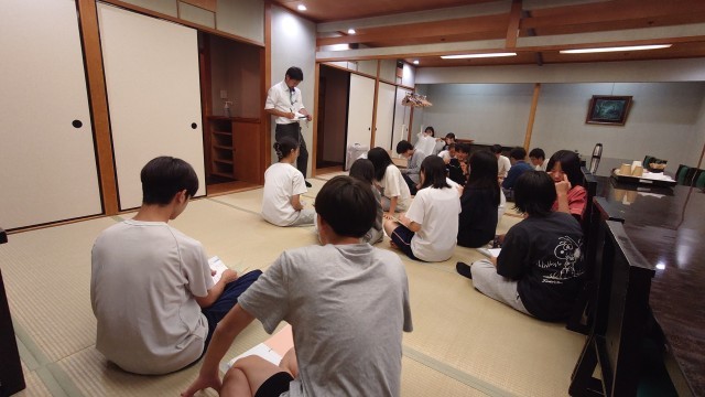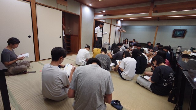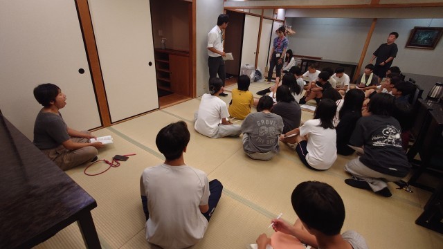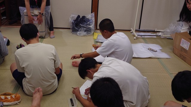 今日の反省と明日の連絡を清水先生と遊佐先生からありました。旅行会社の方から、荷物の梱包の仕方を教えていただきました。
