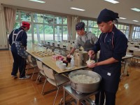 食事係が今日も準備を頑張ってくれました。手を合わせていただきまーす!!たくさん食...