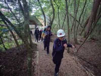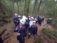 コウモリ穴入り口までは、みんな一緒に散策しました。ヘルメット似合ってます。