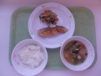 4月8日の献立・牛乳・ご飯・鯛のあずま煮・野菜のごまあえ・すまし汁