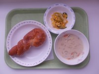 4月15日の献立・牛乳・揚げパン・うずら卵入り春雨スープ・ツナサラダ