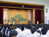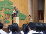 平成23年度は、大蔵流狂言師の山本則俊(やまもと のりとし)さんを、体育館にお招きし、鑑賞会を開催致しました。