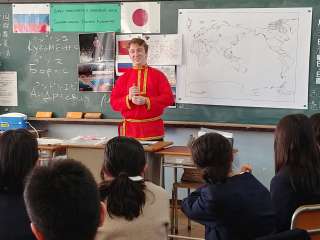 様々な国からの留学生をお招きして、気候や言語、食べ物など、生活の様子について教えていただきます。 短い時間ではありますが、他国の文化を知る貴重な機会となります。