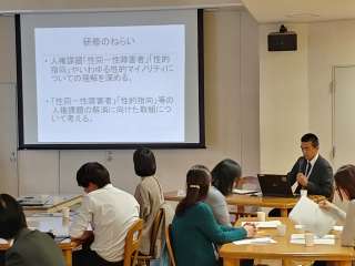 【人権教育の視点】人権課題の一つである「性的指向」について取り上げる。性の多様性に関する複数の教材を扱い、マイノリティの立場や周りの人の立場など、視点を変えて考えさせることを通して、互いの個性や立場を尊重し、認め合おうとする態度につなげる。