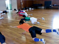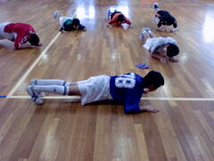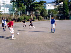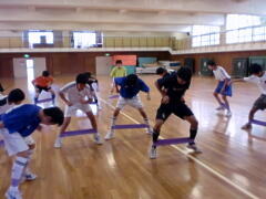 ボールコントロールやドリブル、守備、ヘディングなど基礎練習を中心に行います。