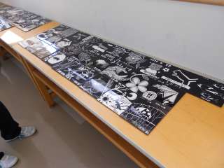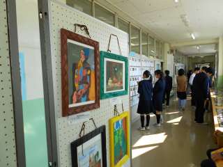 学芸発表会の作品です。 1年スクラッチタイル 2年模写 3年木彫額です。