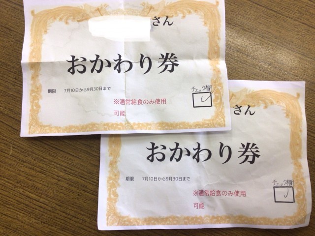 15日の給食はDXからあげ。1年生は、河口湖移動教室レクで獲得したおかわり券を使う生徒も