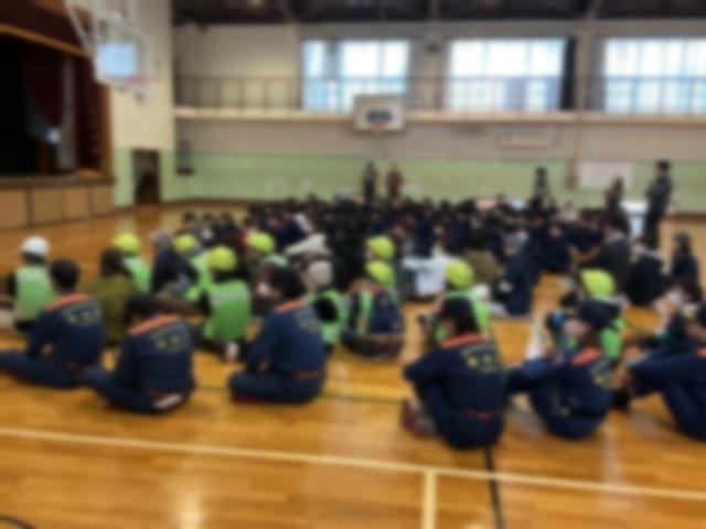保護者、地域の方々と共に、2年生が避難所運営を体験しています。