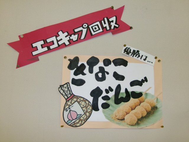 今日の給食は、生徒会主催のペットボトルのキャップを使った