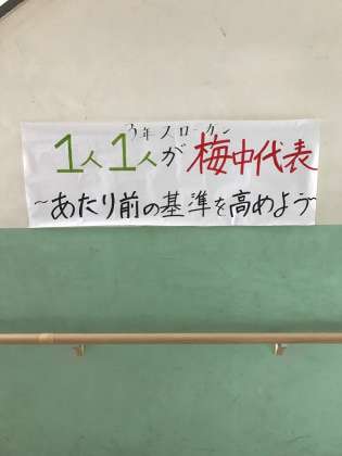 今年度の3年生のスローガンは、一人ひとりが梅中代表〜当たり前の基準を高めよう〜です。