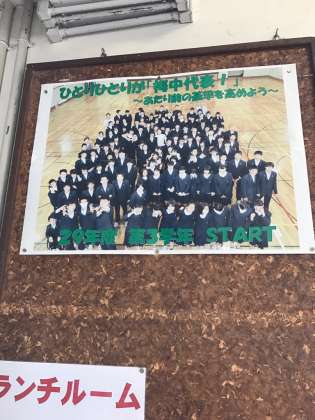 このスローガンのように生徒一人ひとりが自覚を持って梅中の3年生らしく頑張ってもらいたいです。