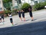 体育祭に向けての準備が着々と始まっています。迫力のあるクラス旗の作成や応援ダンスの練習の様子です。一番下の写真は応援ダンスを3年生に教わっているところです。