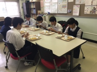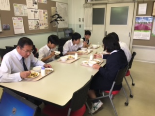 今日から、3年生の一班ずつ、校長先生と給食を一緒にいただく「校長先生とランチタイム」が始まりました。最初は校長室という雰囲気に圧倒され、ことば少なでしたが、だんだん慣れてきて楽しそうに食事を進めていたようです。