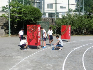 体育祭の前日となりました。写真は前日準備の様子です。係会の生徒やバスケットボール部などの部活動の生徒が手伝ってくれました。