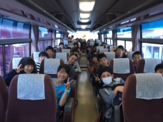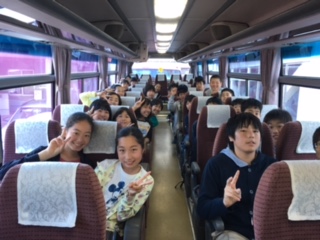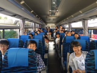 今日から1年生は、河口湖移動教室に出発します。出発式を終えて、いよいよバスが出発します。みんなとても楽しそうです。たくさんのいい思い出をつくれるといいですね。