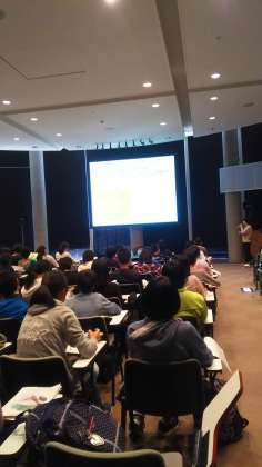 河口湖移動教室は、最初の目的地富士山科学研究所に到着しました。富士山について学習しています。