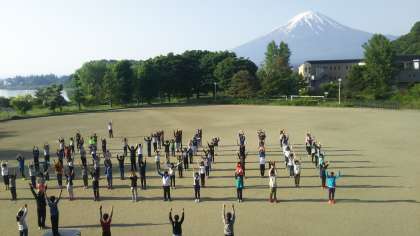 今朝は、6時に起床。そして、園庭で朝会です。今日の予定は、オリエンテーリングとうどん作り。今日も1日がんばります!