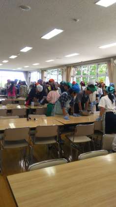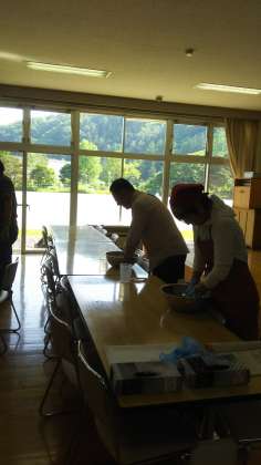 緑の休暇村のオリエンテーリングを終えて、宿舎に戻って来ました。冷たいゼリーの後は、うどん作りです。果たして上手にできるでしょうか?