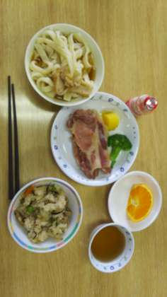どの班も一生懸命作ったうどんを夕食でいただきました?