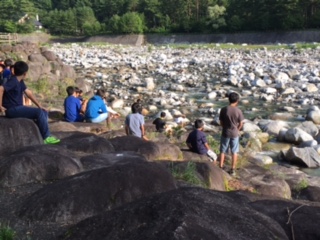 おはようございます。2日目の朝は、青空も見えるまずまずの天気です。各部は、6時に集合して、ホテル周辺の散策をするなどして身体を目覚めさせています。ホテル周辺は、散歩コースがあり、素晴らしい景色を見ながら、みんな1日の始まりを楽しんでいます。