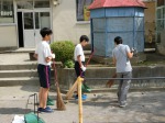 本日から2年生の職場体験が始まりました。写真は代田小での様子です。椅子や机の運び出し、校庭の掃除などを手伝っています。