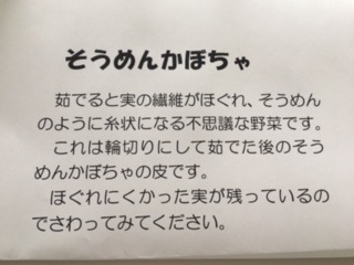 今日の給食は、季節を感じる給食です。9/20〜26のお彼岸にちなんで、あんことゴマの手作りミニおはぎが献立に並びます。また、そうめんカボチャを使った和え物も添えられていました。コリコリとした歯ごたえがあり、とてもおいしかったです。