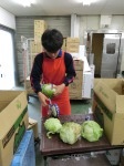 松原駅付近でのスーパーの様子です。野菜を箱に詰める作業などを手伝っていました。