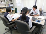 大学での職場体験です。大学における仕事のお話しを聞いています。