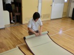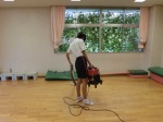 ある保育園での様子です。シートを引いたり、掃除をしています。