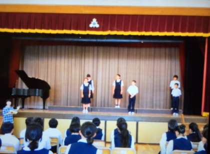 学年練習では、体育館で並び順や入退場の確認、学年合唱の練習などを行いました。
