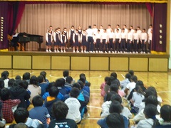 生徒会役員が中心となって準備を進めてきました。始めに生徒会役員が作成したパワーポイント(画像)を使って、「梅丘中学校の学校生活」の説明を行いました。次に先日の合唱コンクールでグランプリをとった3年C組が中学生らしい素晴らしい歌声を披露しました。小学生の皆さんは、多少緊張しながらも、中学生の話や歌声に真剣に耳を傾けていました。
