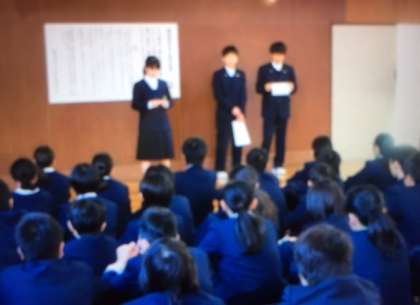 2学期も終盤。先週、学級委員会を中心に行った「学校生活改善キャンペーン」のふり返りを行いました。今週は規律委員会が授業規律に関する取組を行います。