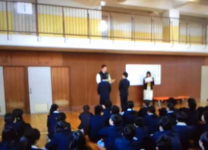 来週、2月8日の総合の時間に、1学年では国際理解教育として留学生による授業を予定しています。