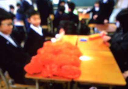 3年生の卒業の準備として、1年生でお花づくりをしました。