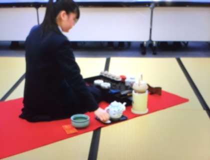 本日、放課後に毎年恒例の校内お茶会が行われました。三年生が最後のお点前を披露しました。20名のゲストが日本文化のお茶の作法に触れ、ゆったりとしたひと時を楽しむことができました。お茶、お茶菓子ともに、美味しく頂戴しました!