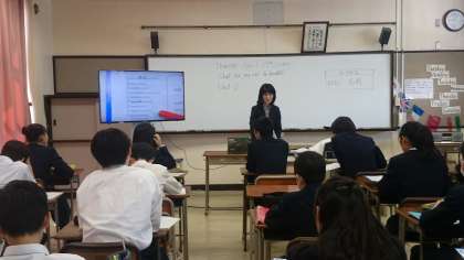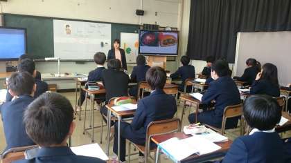 大型ディスプレイを使い、生徒のイメージを広げるなど、興味・関心・意欲を高めながら授業を進めていました。