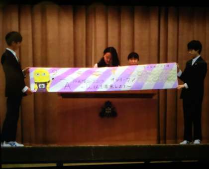 1校時、クラスアピールを全校生徒の前で行いました。クラスごとに学級目標に特別な思いを込めたことが伝わってくるような発表でした。クラスで話し合ったルールなどを意識した行動で、学級や学年に良い雰囲気を作っていきましょう。